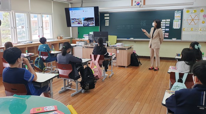 그동안 코로나19로 인해 진행하지 못했는데 소규모학교의 개학으로 이날 서하초등학교 전교생을 대상으로 다이음사업을 실시하였다.