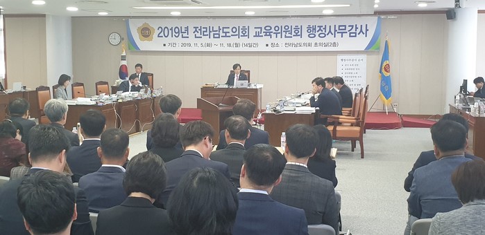 6일 전남도의회에 따르면 도의회 초의실에서 열린 2019년도 행정사무감사에서 신민호 의원은 의사진행발언을 통해 “최근 전남도의회와 집행부간 불통에 대한 논란을 그냥 넘기고 갈수 없다”며 장석웅 교육감의 입장을 공개적으로 밝히라고 요구했다.
