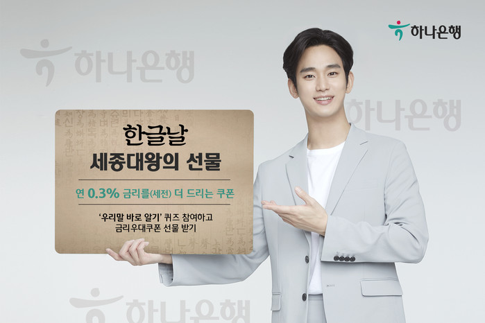 [시민일보 = 여영준 기자] 하나은행은 한글날을 맞아 적금 금리우대쿠폰을 제공하는 '세종대왕의 선물' 이벤트를 실시한다고 8일 밝혔다.