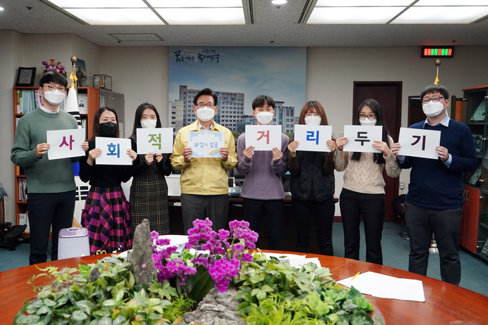 내부적으로도 거리두기에 나섰다. 구는 임신, 육아, 고위험 직원을 대상으로 재택근무를 실시하도록 하고, 대중교통 밀집도 해소를 위해 출근시간도 탄력적으로 운영하고 있다.