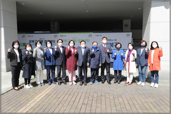 본격적인 접종 실시를 맞아 성북구의회 의원들이 최근 예방접종센터의 현황을 점검하기 위해 모였다.