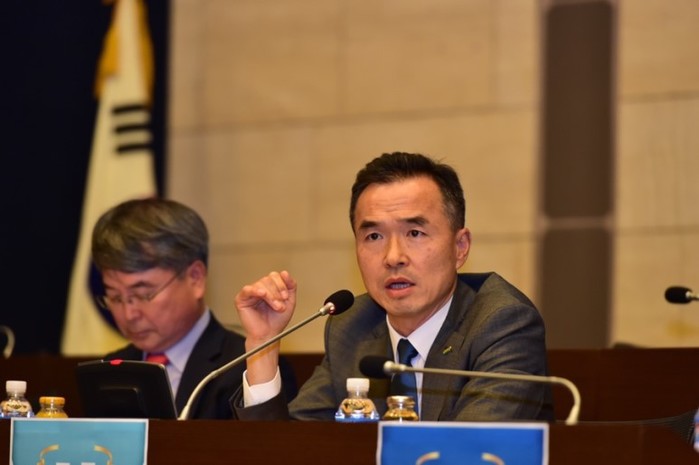 이항진 경기 여주시장이 최근 대한상공회의소 의원회의실에서 열린 ‘한국지방행정연구원 개원 35주년 기념세미나’에 참석해 “시민이 피부로 느낄 수 있는 정책을 연구해야 한다”고 강조했다. 사진은 이 시장(오른쪽)이 발언하는 모습. (사진제공=여주시청)