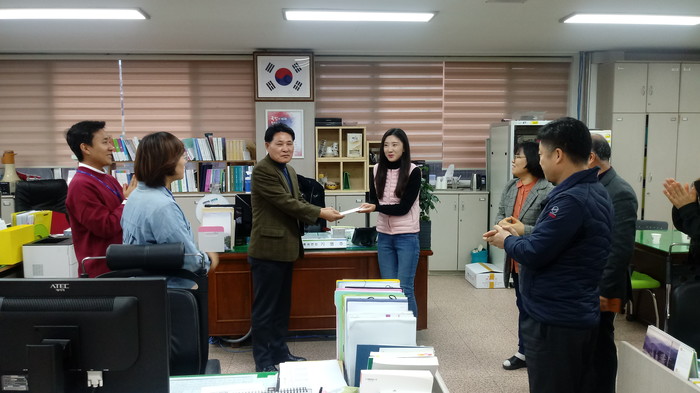 전남 곡성군 죽곡면은 6일 1인 방송 크리에이터 이주은씨로부터 어려운 이웃을 위한 기부금 100만원을 전달받았다. 이씨는 앞으로 노인들을 위한 봉사활동도 하고 싶다는 훈훈한 뜻도 함께 전했다. 사진은 함께 기념촬영을 하는 모습. (사진제공=곡성군청)