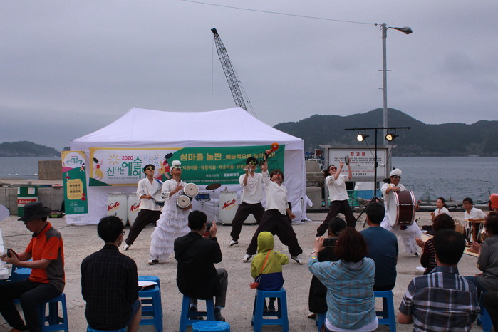 함안군 생생문화재 사업의 협력단체인 풍물패청음(경남도 전문예술단체 제107호)이 지난 6월부터 통영 일대 14개 섬마을지역 500여명을 대상으로 진행한 <2020 신나는예술여행> ‘섬마을 놀판-예술적으로 놀아보자!’가 8월 8일 순회공연을 끝으로 막을 내렸다.