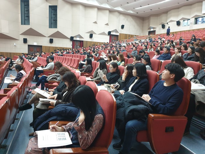 경기 부천시가 최근 시청 어울마당에서 직원 300여명을 대상으로 성과관리 역량 강화 교육을 했다. 이날 이석환 국민대학교 교수가 강사로 나서 '공공부문의 전략적 성과관리에 대한 올바른 이해'를 주제로 강의했다. 사진은 강의를 듣고 있는 직원들 모습. (사진제공=부천시청)