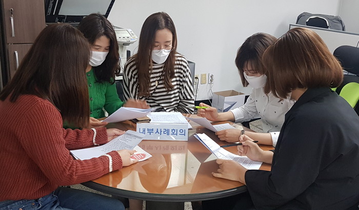 경기 동두천시 소요동행정복지센터가 11일 복지사각지대 해소를 위한 내부사례회의를 개최, 신규 발굴된 사례관리 대상자 4가구와 기존 사례관리 대상자의 추가로 발견된 복지욕구에 대한 해결방안에 대해 논의했다. 사진은 회의를 하는 모습. (사진제공=동두천시청)
