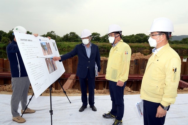 | ▲ 김종효 광주광역시 행정부시장(우측 2번째)이 26일 오후 광산구 도산동 송전선 차집관로 재해복구 공사현장을 방문해 관계자로부터 공사현황을 보고 받고 있다 /광주광역시 제공 |
