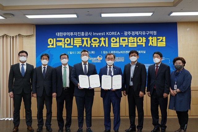 광주경제자유구역청은 15일 오후 광주이노비즈센터 대회의실에서 KOTRA 인베스트코리아와 외국인 투자유치를 위한 업무협약을 체결했다.