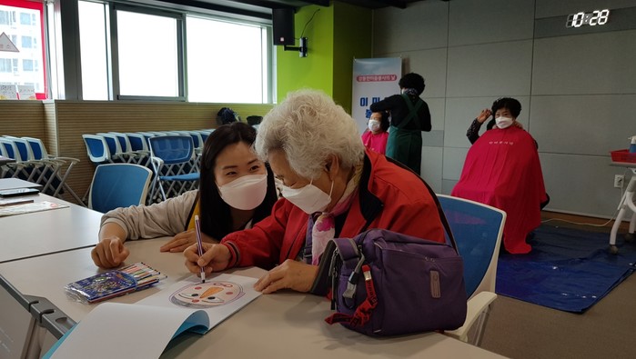 | ▲ 20일 자원봉사센터에서 개최된 ‘찾아가는 강동한마음봉사의 날’ 봉사활동 프로그램을 이용 중인 어르신들 (사진제공=강동구청) |