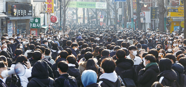 6일 종로구 성균관대학교에서 수시모집 논술고사를 마친 학생들이 나오고 있다. 이날 논술고사를 치른 대학교들은 코로나19 확산 방지를 위해 수험생 외 학내 출입을 금지했다.