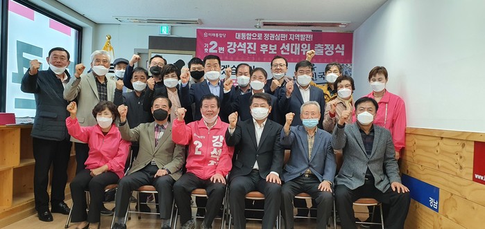 이어 “역사적 소명의식을 갖고 진인사 대천명의 자세로 여러분이 강석진이 되어 대통합 정신으로 수도권, 전국으로까지 승리의 핑크빛이 물들 수 있도록 우리 거창이 핑크혁명의 시발점이 되도록 하자”고 강조했다.
