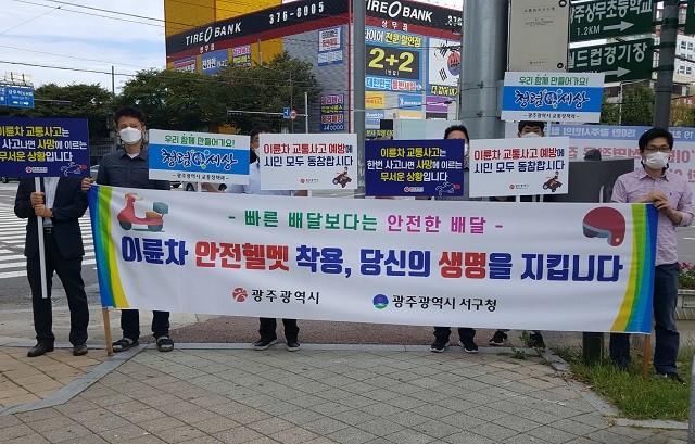 홍보장소는 서구 쌍촌동 상무지구 입구 부근, 동구 지산사거리부근, 북구 용봉동, 남구 주월동 주월교차로, 광산구 신창동 등 이륜차 사고가 잦은 8곳이다.
