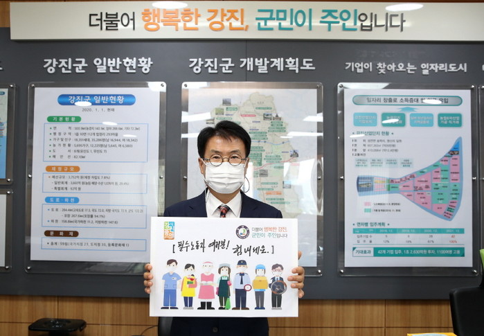 이 군수는 “코로나19로 열악한 환경 속에서도 각자의 자리에서 맡은바 역할을 성실하게 수행해 주시는 여러분들께 진심으로 감사드린다. 노동자들이 더욱 안전한 환경 속에서 최선을 다할 수 있도록 ‘청정 강진’ 사수와 코로나19의 조속한 종식을 위해 총력하겠다”고 말했다.