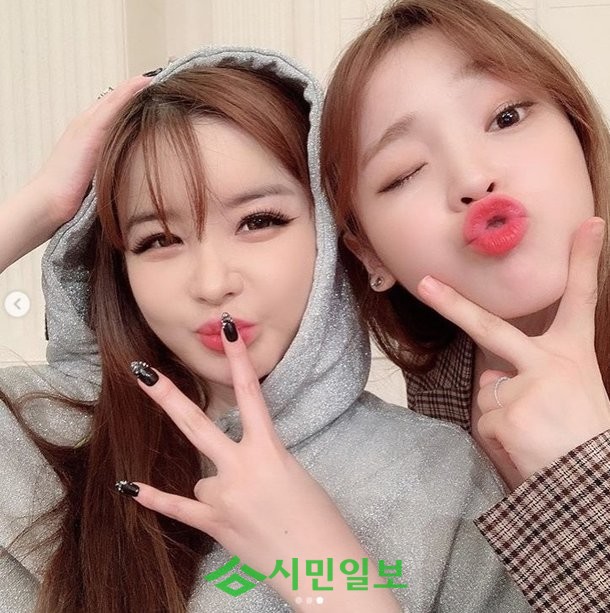 공개된 사진엔 캐주얼한 차림으로 함께 셀카를 남기는 박봄, 승희의 모습이 담겨 있다. 똑같은 포즈로 귀여운 매력을 발산 중인 두 사람의 정다운 분위기가 시선을 사로잡는다.
