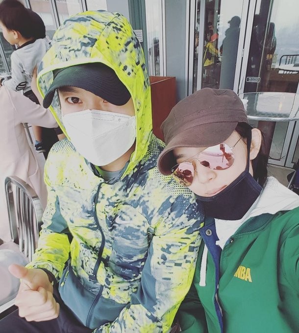 공개된 사진 속 두 사람은 선글라스와 마스크로 얼굴을 가리고 투 샷을 찍고 있다. 특히 사진으로도 느껴지는 훈훈한 분위기가 돋보인다.
