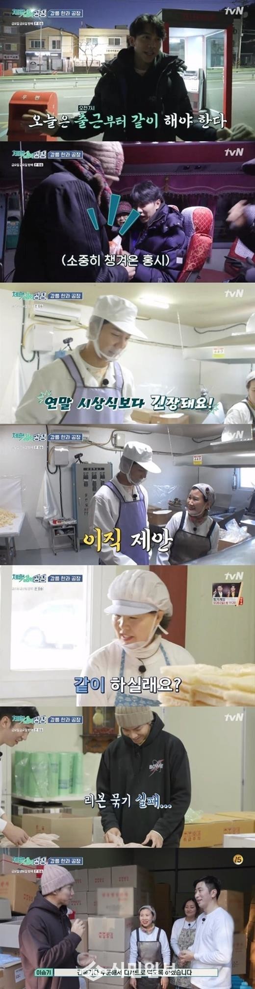 공장에 도착한 이승기는 가장 먼저 유과 튀기기에 도전했다. 이승기는 사장님의 친절한 가르침에도 불구하고 서툰 모습을 보였다. 이승기는 계속된 실패에 "기름에 손을 넣고 싶을 정도로 답답하다. 연말 시상식보다 긴장된다"고 말했다.