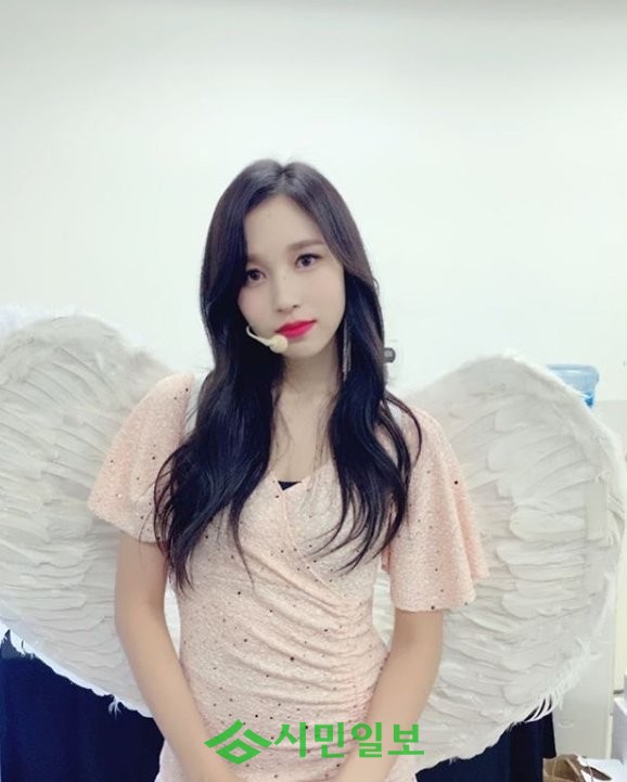공개된 사진 속 미나는 날개 달린 분홍빛 원피스를 착용한 모습. 청순하면서도 화사한 비주얼이 시선을 사로잡는다.