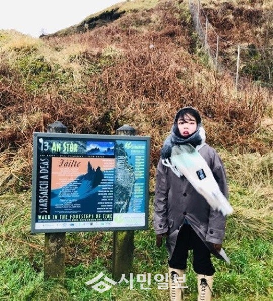 공개된 사진 속 김향기는 트래킹 중 바람에 힘겨워 하는 모습으로 웃음을 자아냈다.