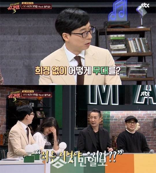 정희경 없이 공연을 했다는 프리스타일. "정희경 씨 없이 어떻게 활동을 했냐"라는 유재석의 물음에 "연락을 많이 드렸다"면서 "죄를 지었냐 우리가, 왜 같이 안 하려고 하냐"라고 억울함을 호소해 웃음을 자아냈다.