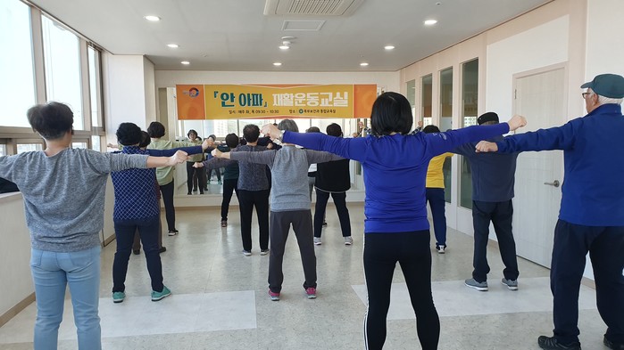 경기 김포시보건소 북부보건과는 15일 재활운동교실을 개강했다. 이번 재활운동교실은 오는 2020년 4월14일까지 6개월 과정으로, 주 2회(화·목) 오전 9시30분~10시30분 운영된다. 사진은 참여자들이 재활운동을 하고 있는 모습. (사진제공=김포시청)