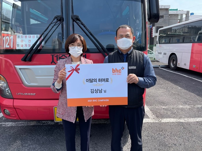 bhc치킨에 따르면 김씨는 지난 2월27일 제주시 삼도일동 서사라 사거리에서 버스를 운행하던 중 상가에서 불길을 발견했다.