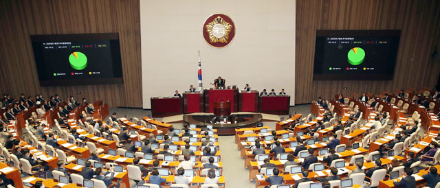 30일 국회에서 열린 제3차 본회의에서 2020년도 제2회 추가경정예산안이 가결되고 있다.