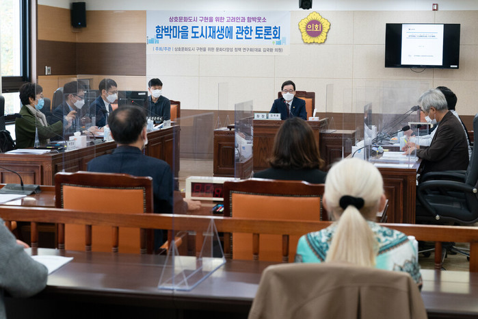 [인천=문찬식 기자] 인천시의회 상호문화도시 구현을 위한 문화다양성 정책연구회가 최근 행정안전위원회 회의실에서 함박마을 도시재생에 관한 토론회를 개최했다.