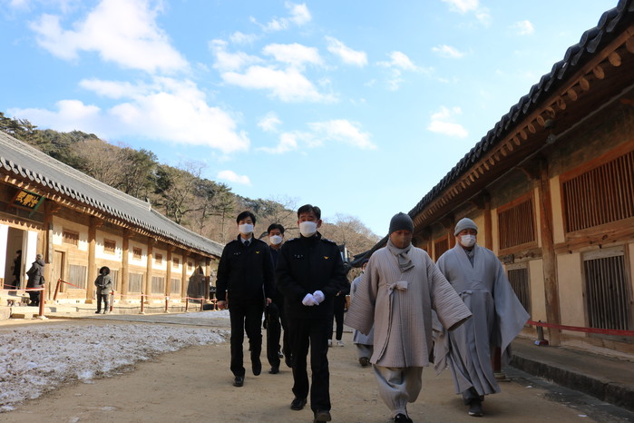 [합천=이영수 기자]지난 1일 취임한 김조일 경남소방본부장이 8일 대한민국 3대 사찰 중 하나인 합천 해인사를 방문해 겨울철 화재 예방을 위한 현장지도에 나섰다.
