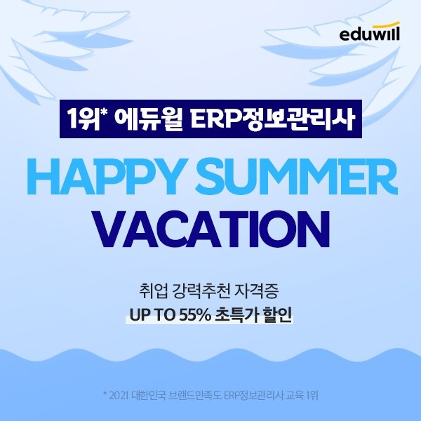 해피서머 보케이션에 대한 자세한 내용은 에듀윌 ERP정보관리사 홈페이지를 통해 확인할 수 있다.