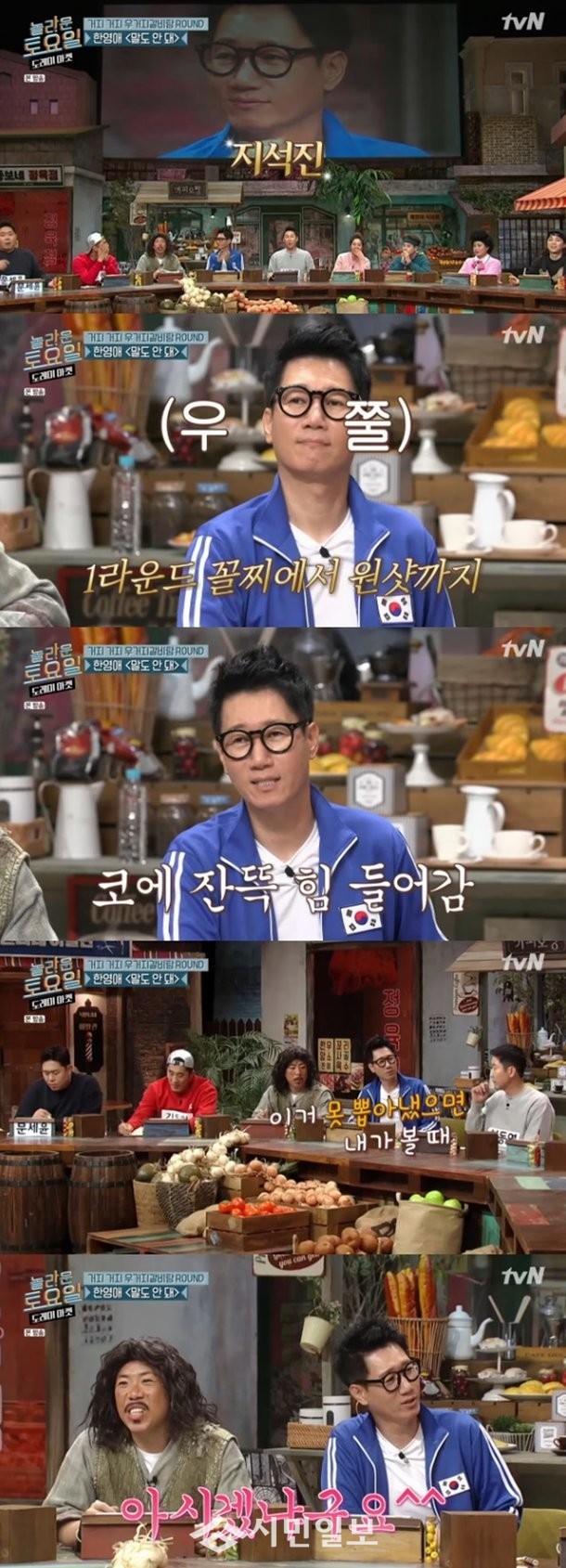이어 지석진은 원샷을 받았다. 지석진은 "내가 이걸 못 뽑아냈으면 1시간 동안 끌었을 거다. 내가 1시간을 절약해줬다"고 어깨를 으쓱했다.