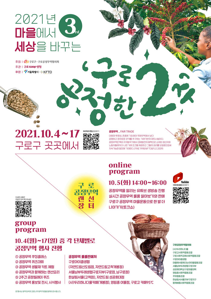 공정무역에 대한 주민들의 공감대 확산을 위해 2019년 시작해 올해로 3회째를 맞는 이번 행사는 이달 17일까지 구로구 곳곳에서 펼쳐진다.