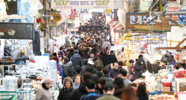 12일 부산 부산진구 부전시장이 제수용품을 구입하는 시민들로 붐비고 있다