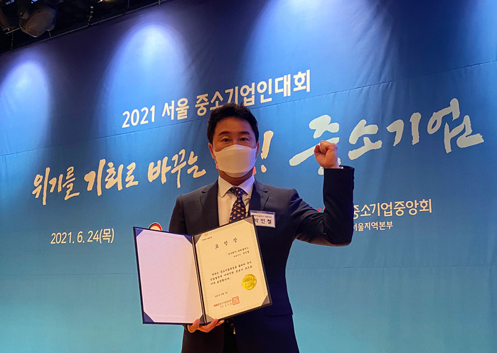 [시민일보 = 이승준] 24일 상암 중소기업DMC타워에서 진행된 서울 중소기업인 대회에서 ㈜파워풀엑스 박인철 대표이사가 '2021년 중소기업 유공자 포상'을 수상했다.