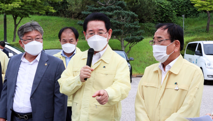 김 지사는 또 도민들에게 “휴가철 타 지역 방문이 늘면서 7월 이후 도내 확진자가 연일 두 자릿수를 기록하는 우려스러운 상황”이라며 “타 지역을 다녀온 후에는 가까운 선별진료소를 찾아 무료 검사를 받는 것이 중요하다”고 강조했다. 특히 “발열 등 증상이 있으면 즉시 선별진료소를 방문해 진단검사를 해야 한다”고 덧붙였다.
