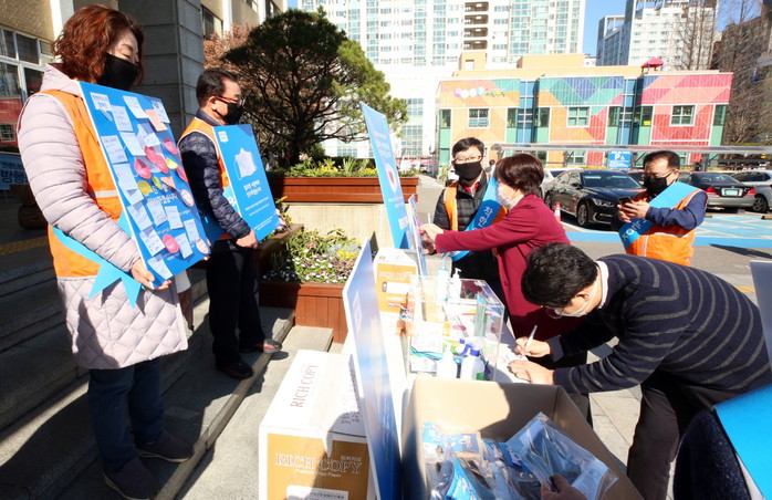 행사는 지난 16일부터 구청 앞 현관에서 진행됐다. 지역주민과 구청 직원들이 참여해 보건용 마스크를 기부하고, 코로나19 극복을 바라는 응원의 메시지도 작성했다.
