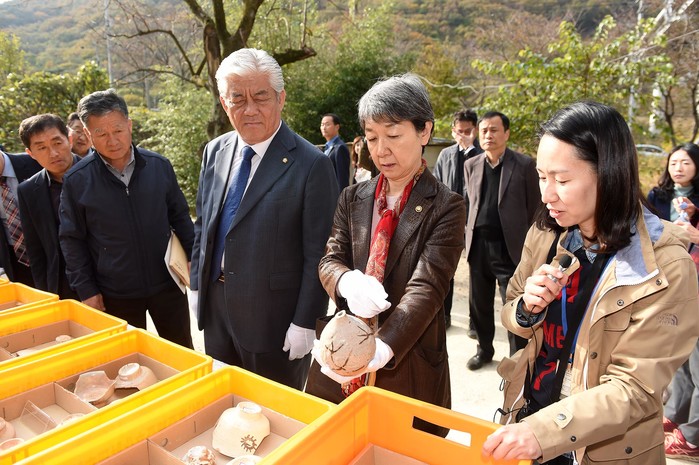 정재숙 문화재청장이 12일 오후 2시 김해시 상동면 대감리 백자가마터 발굴현장을 방문했다.