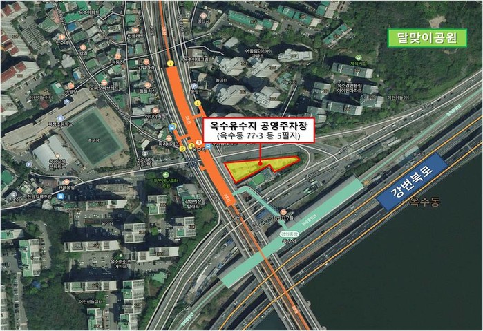| ▲ 옥수유수지 공영주차장 위치도. (사진제공=성동구청) |