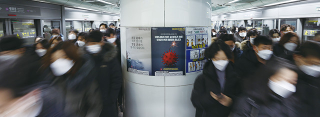 17일 오전 서울 지하철 5호선 광화문역에서 시민들이 마스크를 착용한 채 출근하고 있다.
