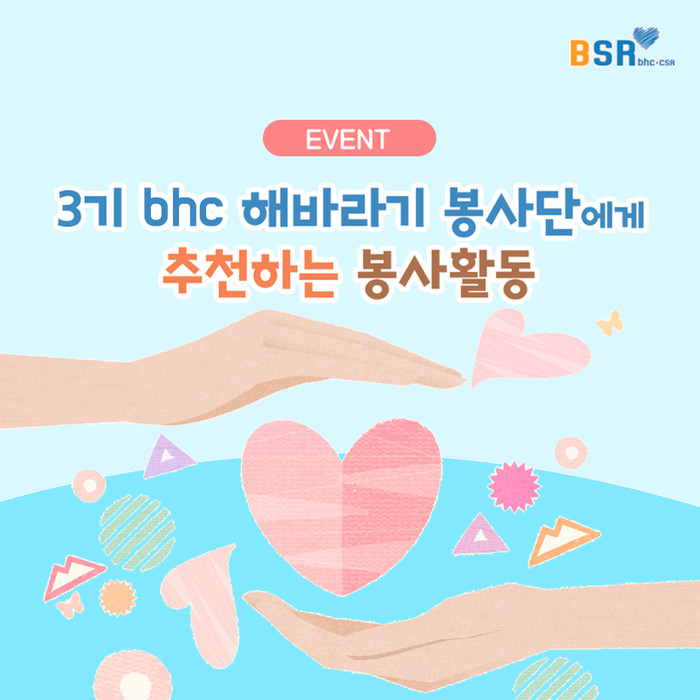 bhc치킨이 BSR(bhc+CSR) 활동의 일환으로 시행 중인 bhc치킨 해바라기 봉사단에게 봉사가 필요한 곳 또는 추천해주고 싶은 봉사활동을 BSR 공식 블로그와 페이스북을 통해 댓글로 남기면 자동으로 응모된다.