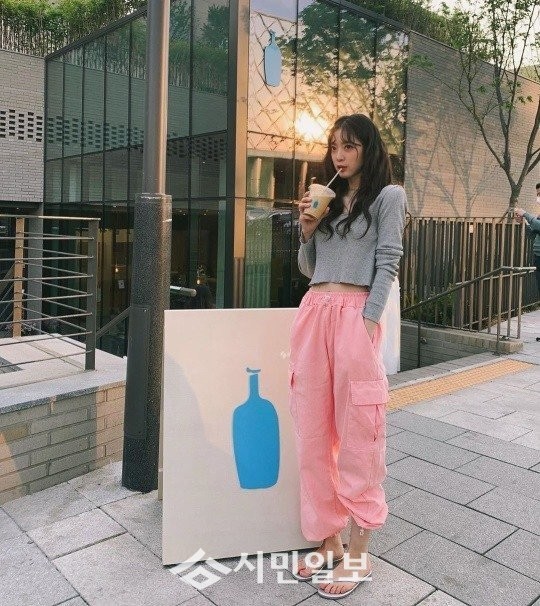 아영은 자신의 인스타그램 계정에 사진과 함께 "핑크 그레이 조합 사랑해"라고 글을 남겼다.