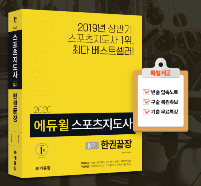 [시민일보 = 여영준 기자] 종합교육기업 에듀윌(대표 박명규)이 발간한 ‘2020 에듀윌 스포츠지도사 필기 한권끝장’ 수험서가 온라인서점 예스24의 스포츠경영관리사 부문 9월 3주차 베스트셀러 1위를 차지했다.