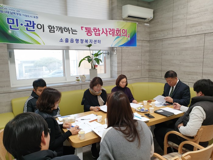 경기 포천시 소흘읍행정복지센터가 9일 지역내 유관기관과 관련 부서 실무자 등이 참석한 가운데 경자년 새해 첫 통합사례회의를 개최했다. 이날 회의에서는 통합사례대상 선정 여부와 지원방안에 대한 다양한 의견이 제시됐다. 사진은 회의 진행 모습. (사진제공=포천시청)