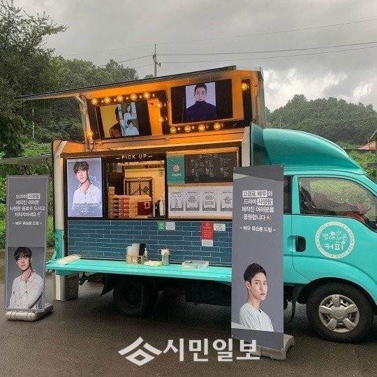 공개된 사진 속에는 고경표가 류승룡에게 선물받은 커피차가 담겨 훈훈함을 자아냈다.