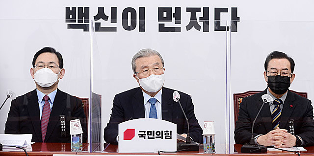 국민의힘 김종인 비상대책위원장이 14일 오전 서울 여의도 국회에서 열린 비상대책위원회의에서 발언하고 있다.