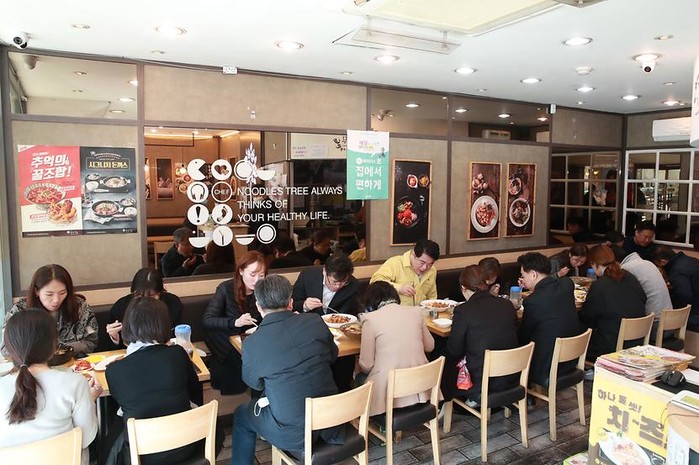 | ▲ 박준희 구청장이 직원들과 코로나19 확진자가 다녀간 식당을 찾아 사업주와 함께 식사를 하고 있다.(사진제공=관악구청) |
