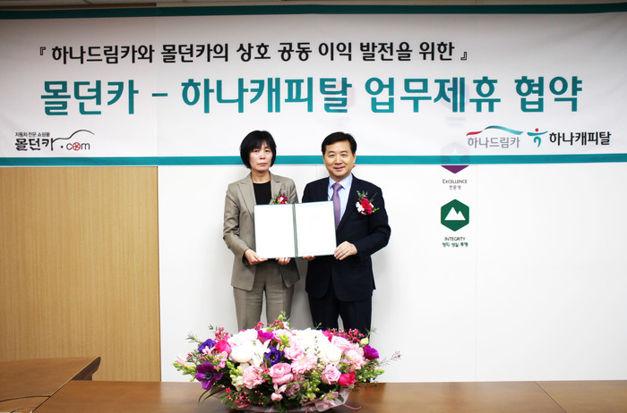 하나캐피탈에 따르면 이번 업무제휴는 하나캐피탈의 오토금융 전문성과 ‘몰던카’의 온라인 플랫폼 운영 노하우를 공유함으로써 중고차 거래 관련 온라인 시장에서 양사 협력을 통한 시장 영향력 강화 및 상생 도모를 위해 마련됐다.