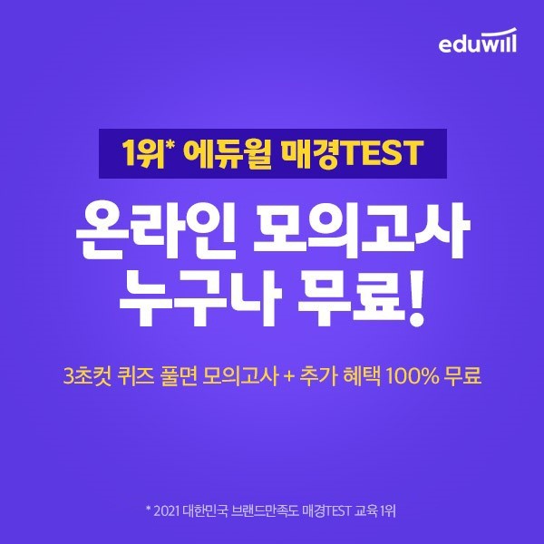 [시민일보 = 여영준 기자] 종합교육기업 에듀윌(대표 박명규) 매경 테스트가 오는 22일 시행되는 73회차 매경TEST(테스트) 시험에 대비할 수 있는 ‘온라인 모의고사’를 신청자 전원에게 무료로 제공한다.