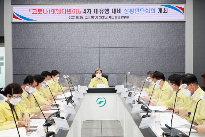 의령군은 ‘코로나19 델타변이’ 4차 대유행에 대비 선제적 대응을 통한 ‘지역 감염 제로화’를 유지하기 위하여 지난 9일 의령군 재난안전대책본부장(오태완 군수) 주재로 상황판단회의를 개최하였다.