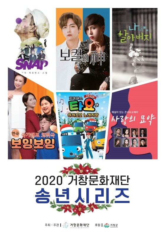 (재)거창문화재단(이사장 구인모)은 12월 송년을 맞이해 연극, 대중가요, 어린이 가족뮤지컬, 콘서트 오페라, 마술 등 코로나19로 지친 군민들을 위한 연령별, 장르별 다양한 공연을 선보일 예정이다.