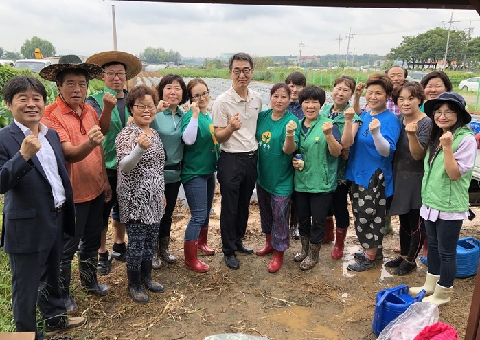 경기 수원시 권선구 세류3동 새마을협의회는 27일 새마을 텃밭에서 사랑의 배추모종 심기 행사를 진행했다. 새마을 텃밭 가꾸기의 일환으로 이뤄진 이날 행사에는 세류3동 새마을협의회와 새마을부녀회 회원들이 함께 배추 모종 1000종을 옮겨 심으며 구슬땀을 흘렸다. 사진은 참여자들이 기념촬영을 하는 모습. (사진제공=권선구청)